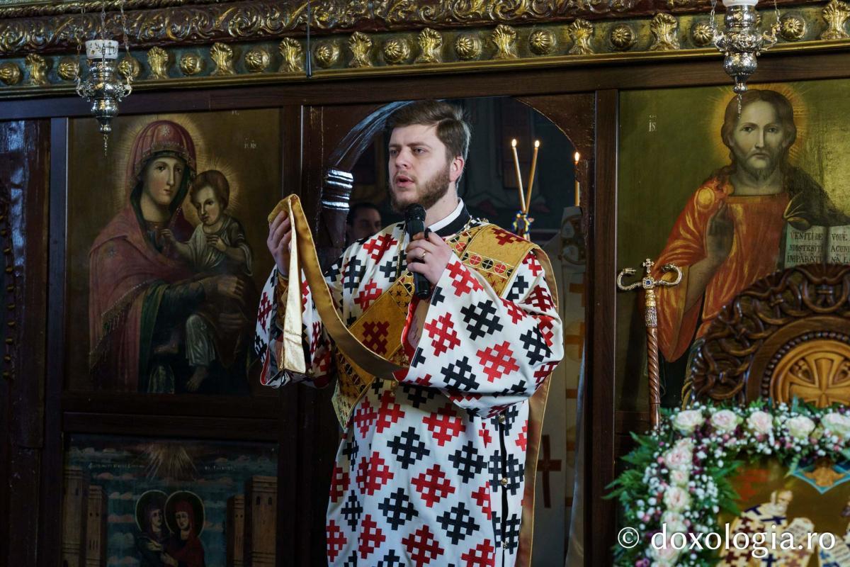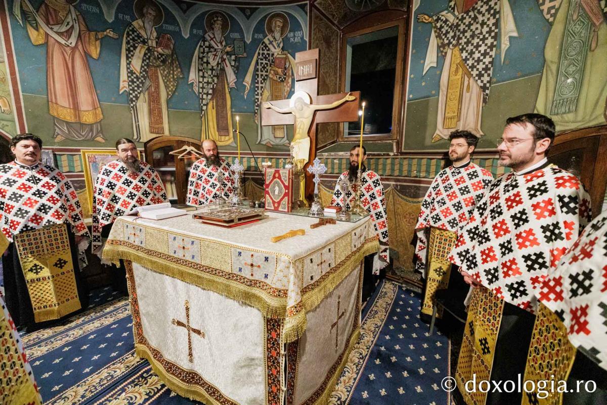 Sfânta Liturghie a fost săvârșită de Înaltpreasfinţitul Părinte Teofan, Mitropolitul Moldovei și Bucovinei, înconjurat de un sobor de preoți și diaconi.
